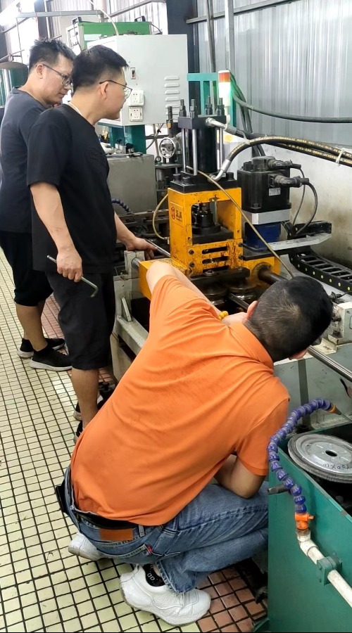 到了客戶現(xiàn)場,發(fā)現(xiàn)焊管整平效果有點小問題,有竹節(jié)印的狀況發(fā)生。在確認(rèn)了問題的核心后,開始觀察產(chǎn)線上沒一道工序運行狀況,一個接著一個問題來進行排除?;ㄙM了4到6個小時后,終于把問題點找出來。